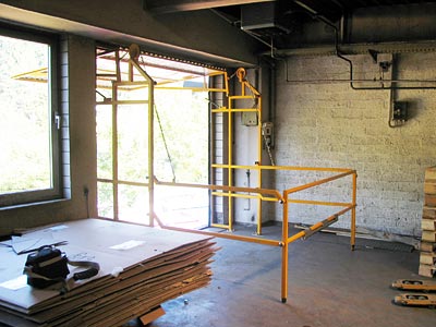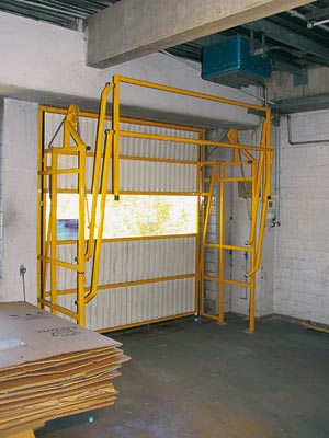 Porte-écluse avec reprise arrière au palan ou aménagée dans un sas fermé par des portes à deux vantaux côté intérieur.
